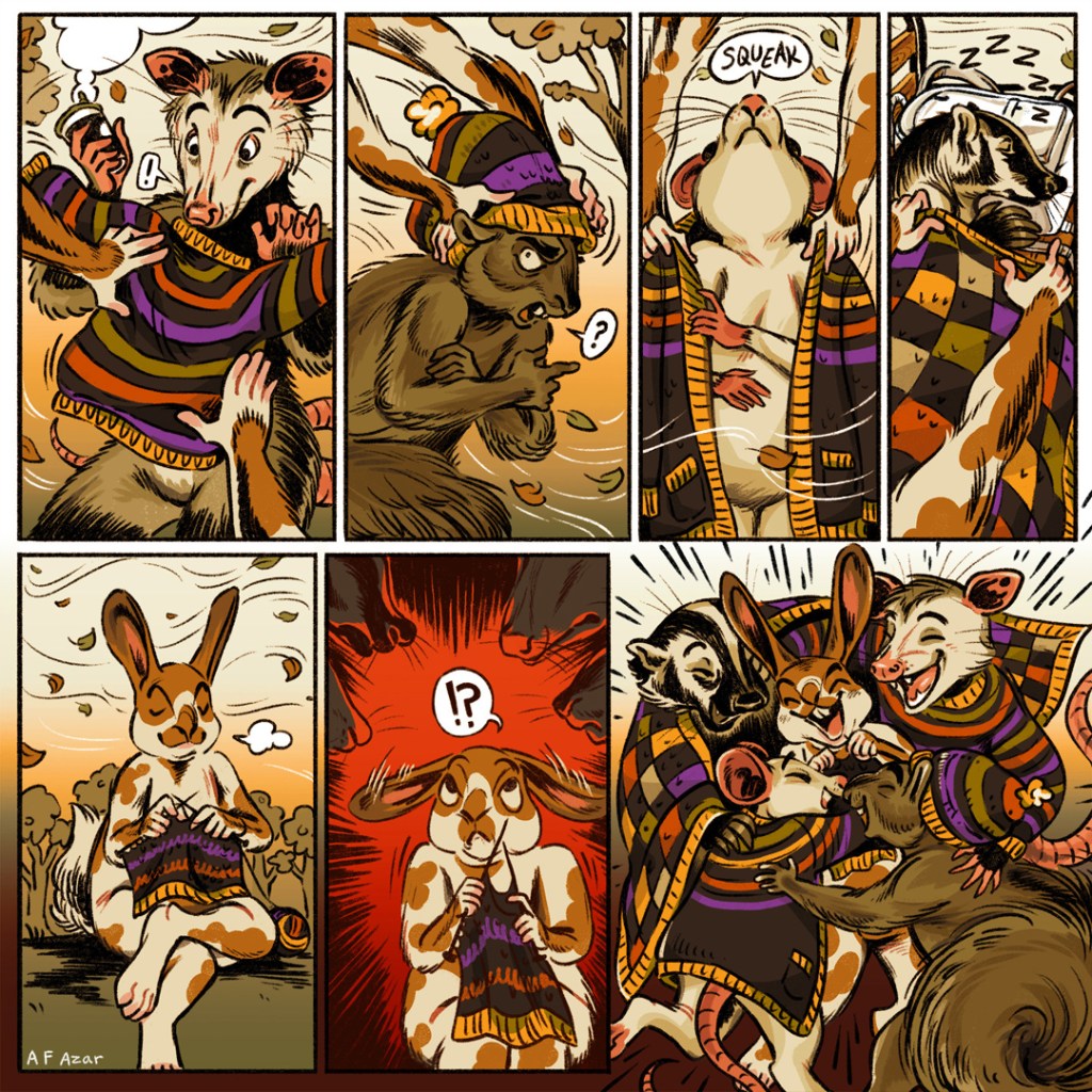 For Cleveland Scene’s 12th annual Comics Issue, 2024. Theme: “Warm n’ Fuzzies.”