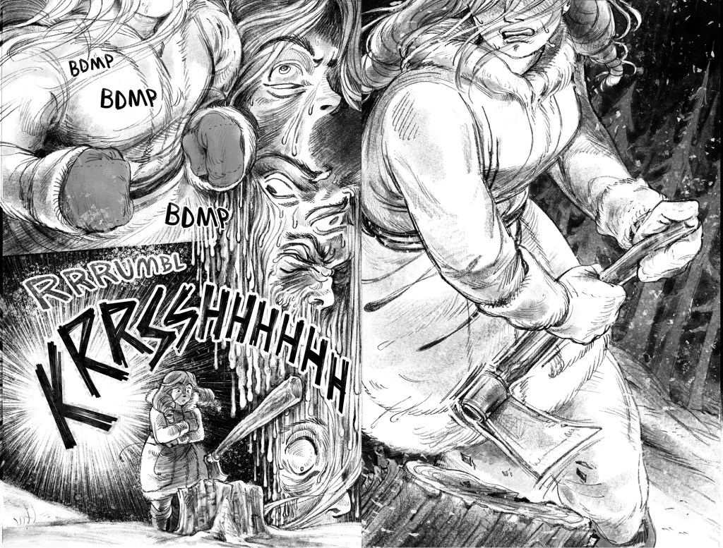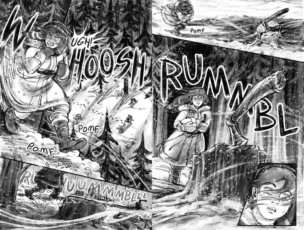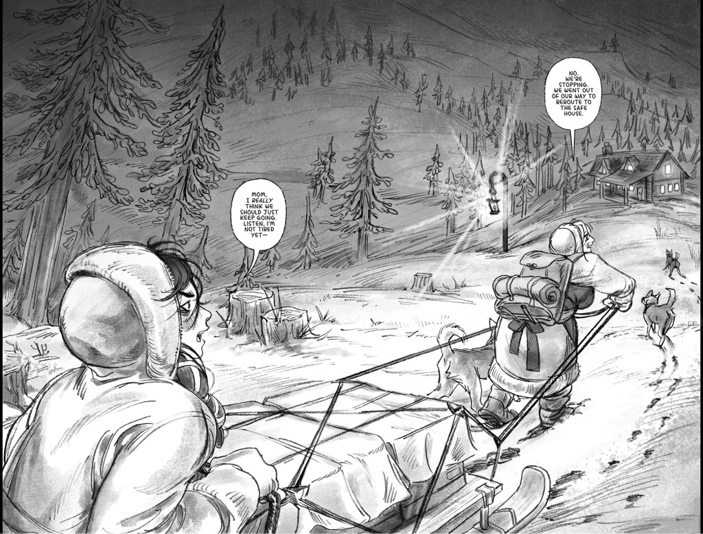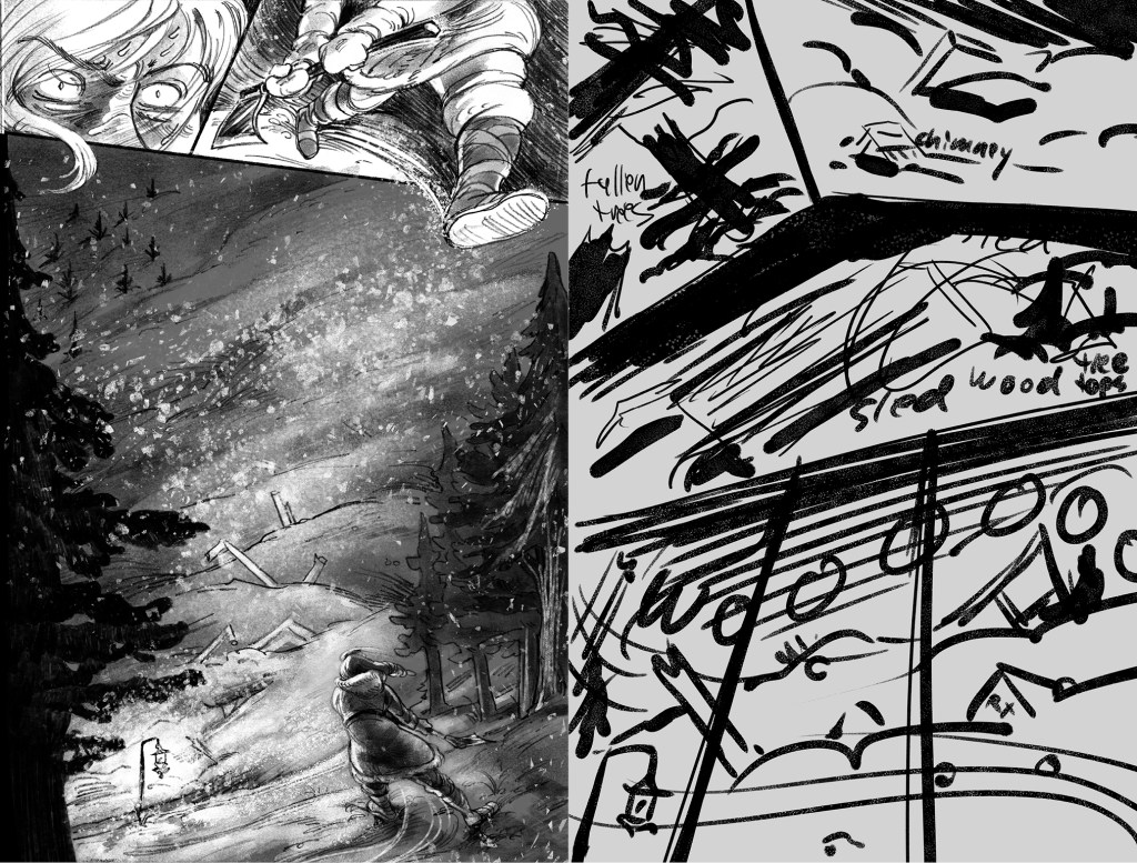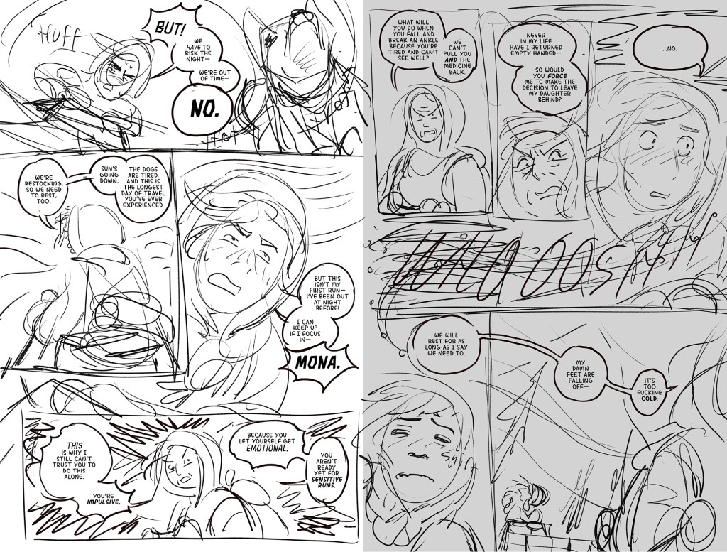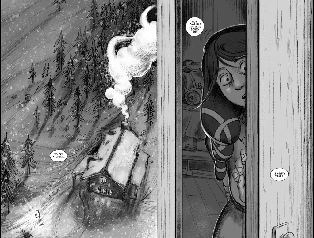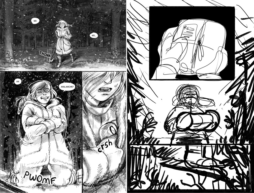 He Received a Letter is an unfinished short comic about the disastrous aftermath of when Mona—a young woman who makes supply deliveries between distant mountain villages with her mother—writes a letter to her father informing him of her mother’s infidelity at work. She slips it in the mailbox on the eve of an important run that includes picking up life-saving medicine for sick residents of their isolated home town, expecting the issue to be addressed after the journey. Instead, her father climbs the mountain to confront them at the last rest stop on their return—when an avalanche crashes down on the argument. The comic features nonlinear storytelling, traditional line work finished with textured digital tones, and a sense of doom that underscores the cruelty of each character’s actions.