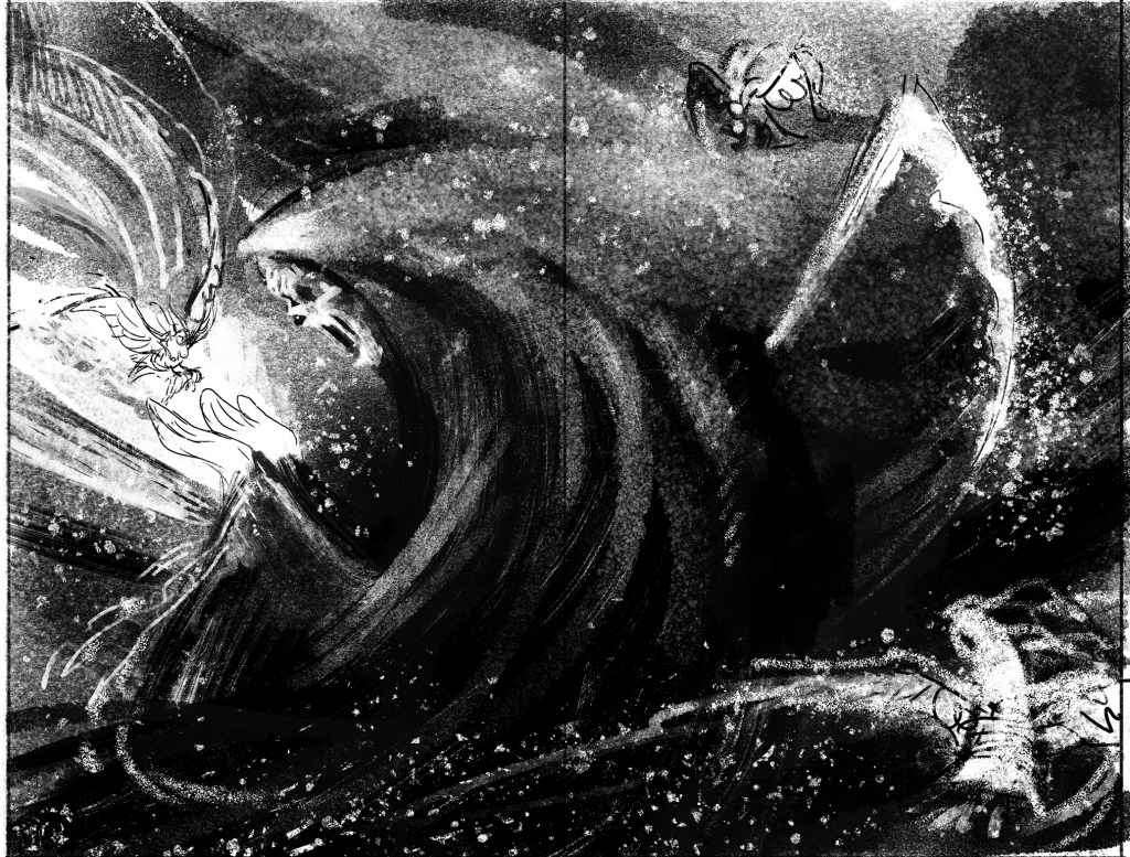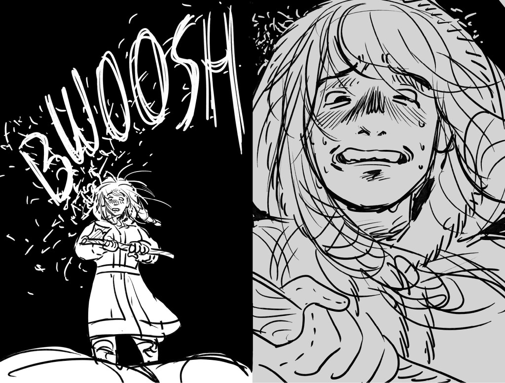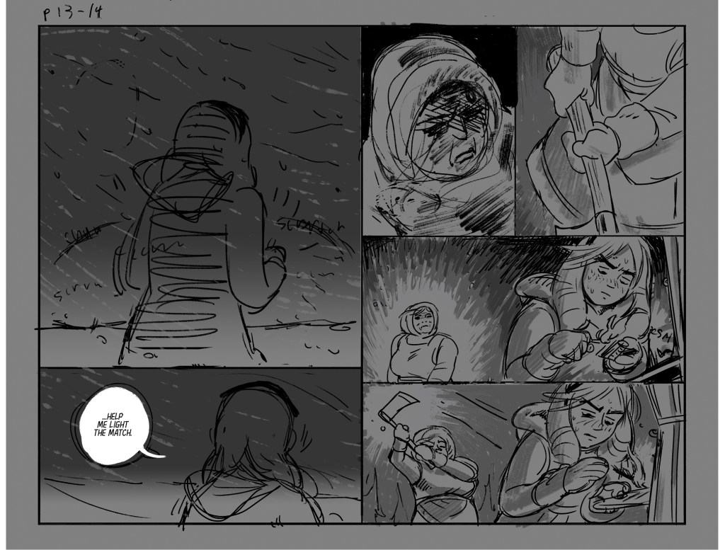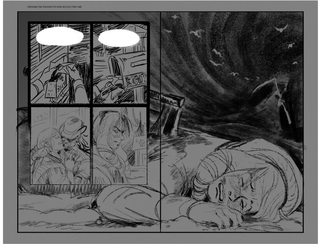 He Received a Letter was started in 2021. Several pages were taken to finish, some reached tight pencils, and some remained as concepts or thumbnails. I picked it back up on and off over the next few years, until in 2024 I ultimately decided I had outgrown the project and would not be finishing it.